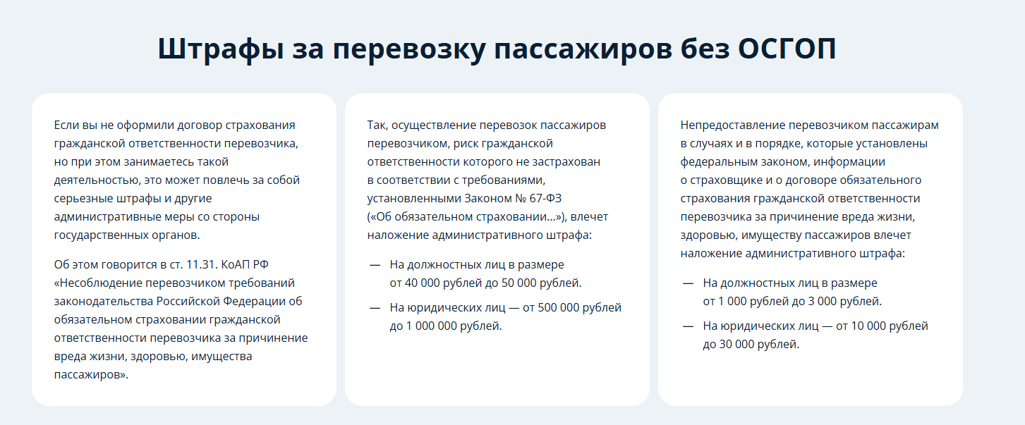 ОСП или ОСГОП является обязательным видом страхования для всех перевозчиков пассажиров, независимо от вида транспорта и перевозок, которыми они занимаются. Страховка гражданской ответственности перевозчика помогает минимизировать финансовые риски, связанные с происшествиями в пути. Для государства это также важный инструмент регулирования безопасности транспортных перевозок и защиты интересов граждан.